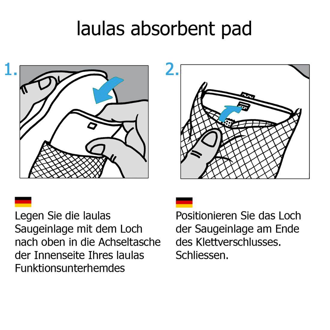 - Nivel 2 » Bolsillo axilar con almohadilla absorbente reemplazable » laulas® pads con fibras superabsorbentes retienen el sudor de forma segura. Al cambiarlas, eliminas tanto el sudor como el olor.