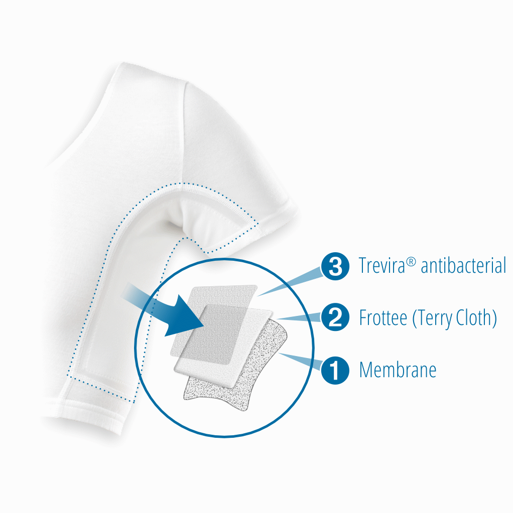 - Stufe 2 » Integrierter Frotteestoff » mit seiner immensen Saugfähigkeit speichert die Frottee-Schicht Ihren Schweiß und verhindert so kleine bis große Schweißmengen über den ganzen Tag hinweg.